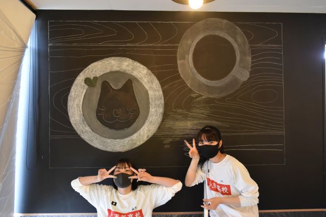 店主の高橋さんは、大矢野高校時代の卒業生。初回のチョークアートに続き「第2弾も後輩たちに手がけてほしい」とのことでお話しをいただきました。
