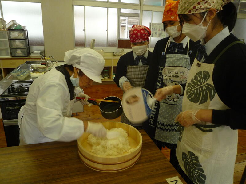 12月14日(火)、16日(木)、17日(金)の3日間「郷土料理教室」を実施しました。1年1・2・3組(家庭基礎)、3年4組地域(フードデザイン)の生徒が、”あまづら会”の方々を講師として招き、上天草市や日本の郷土料理を伝授していただきました。