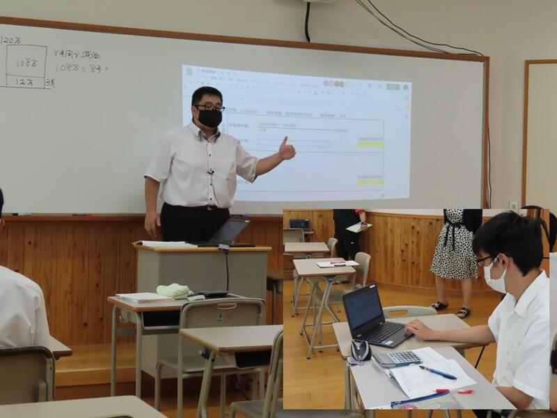 | 商業科(財務会計Ⅰ)での活用場面。取引の仕訳をデジタル化し、生徒と教師を共有する。生徒の手元の端末ではリアルタイムで更新されるので、仕訳の手順を視覚的に理解することができる。 |