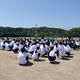4月16日(木)、昨日までの雨模様とは打って変わって、4月とは思えないほどの強い日差しが照りつけました。そんな中、本校グラウンドでは生徒たちが本番さながらの熱気で練習に励んでいます。 全体練習では、開会式や入場行進の確認が行われました。先生方や応援リーダーの鋭い指示が飛ぶ中、一糸乱れぬ行進を目指して練習する姿には、心地よい緊張感が漂います。指先まで意識を向けた動きに、上天草高校生としての誇りを感じました。 一転して、その後の団ごとの練習は活気ある「作戦会議」の場に!競技種目の練習を中心に、生徒たちは熱心に意見を出し合いながらも、時折弾けるような笑顔を見せ、和気あいあいとした雰囲気で団結力を高めていました。 体育大会本番は4月25日(土)。いよいよカウントダウンが始まりました。急な気温の変化もあります。こまめな水分補給などの熱中症対策と、怪我の予防に十分に気を配りながら、最高のコンディションで当日を迎えましょう! 皆さんの努力がグラウンドで花開く瞬間を、楽しみにしています。