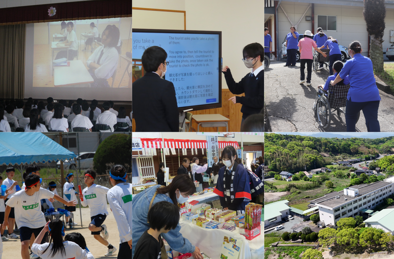 『上天草の課題は日本の課題!』を合言葉に、「ひと・もの・資源の宝庫」上天草で探究的な学習活動を通して、地域を深く理解し、誇りに思う心や地域のために思考・行動・表現できる力を育み、地域の未来を切り拓くリーダーを育成を目指しています。
