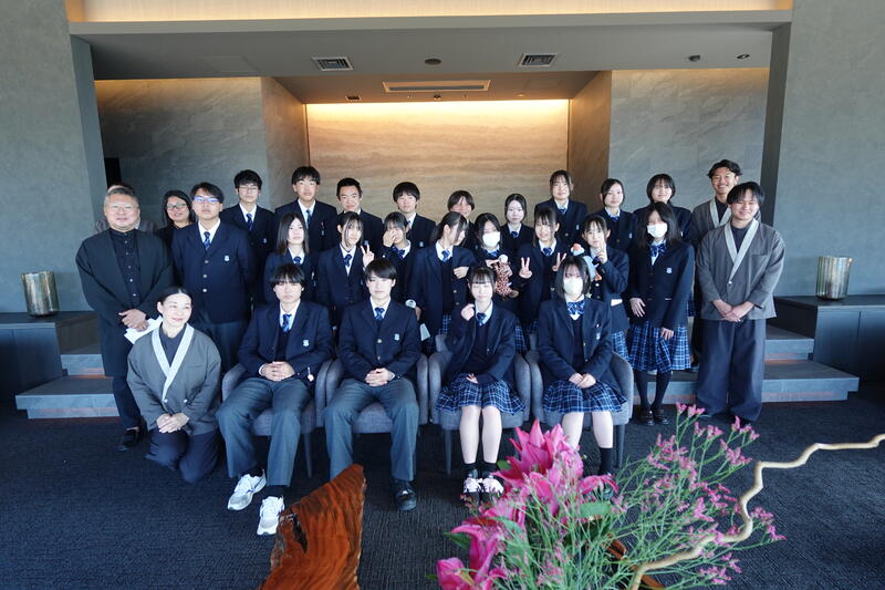 1/28(水)、本校と「魅力向上のための包括支援協定」を結んでいるマリーゴールドHD様が2024年に上天草市内にオープンされた宿泊施設「TAYUTA」様を訪問してきました!