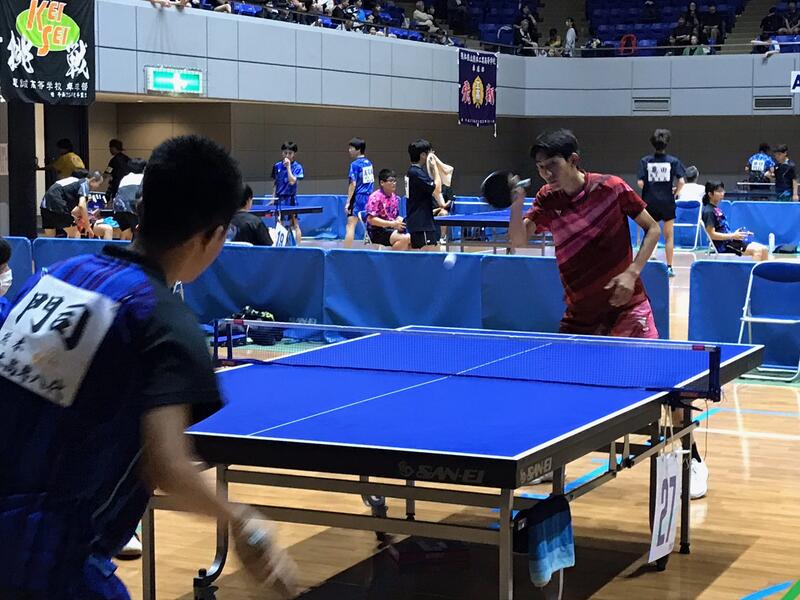 令和7年5月30日(金)人吉スポーツパレスにて、令和7年度熊本県高等学校総合体育大会卓球競技が行われ、本校から3年の福島くんと2年の中満くんがダブルスとシングルスに出場しました。