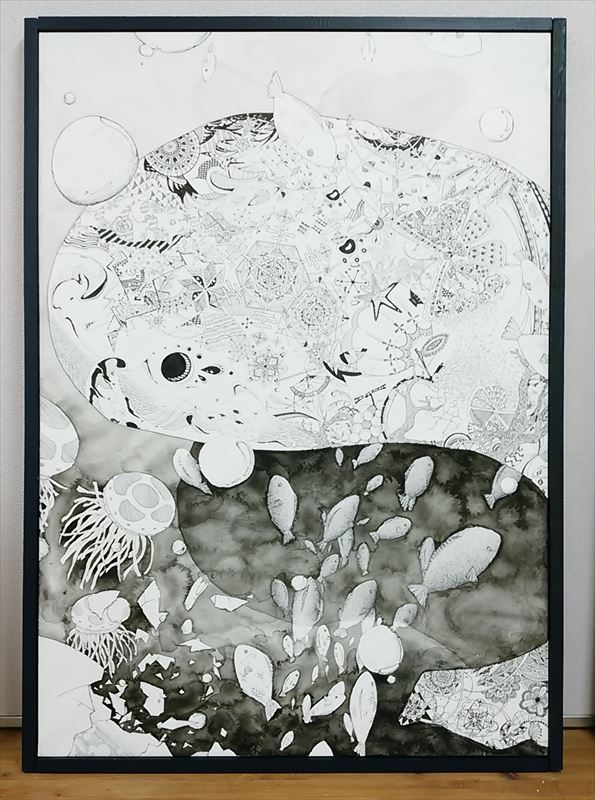高等学校総合体育大会での高校生の「叫び」をテーマに描きました。叫びの中には、闘争心や苦しみ、そして応援や歓喜など様々なものがあります。そんな強い感情が発露する様を勢いと臨場感を意識して表現しました。
