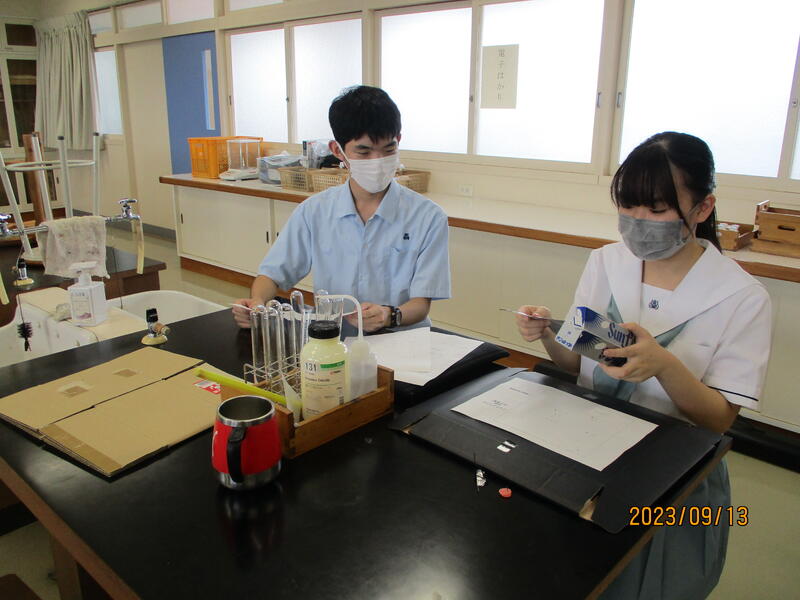 9月29日の文化祭では、部員が選んだ実験の実演や展示を行います。