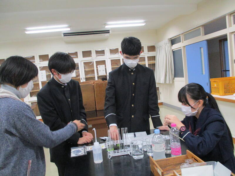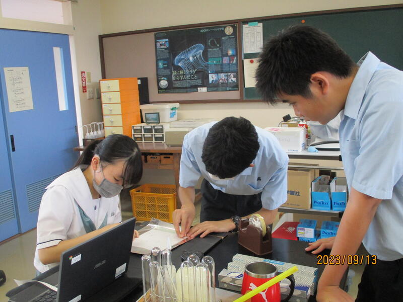 今年度、科学部では研究班、実験班に分かれて活動をしています。