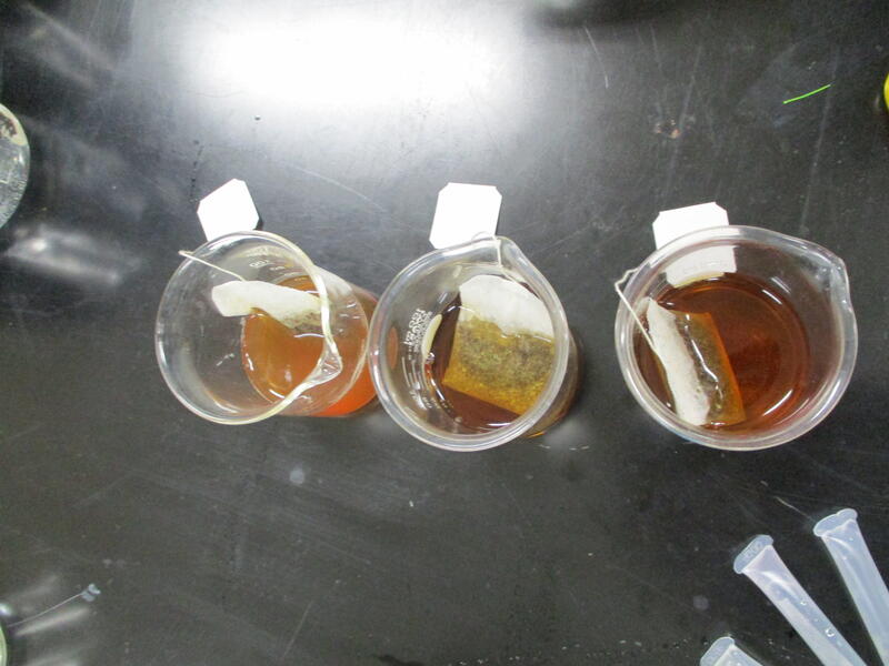 最後に、2種類の硬水、水道水に紅茶のティーパックを浸しました。水によって、紅茶の色がかなり違いました。