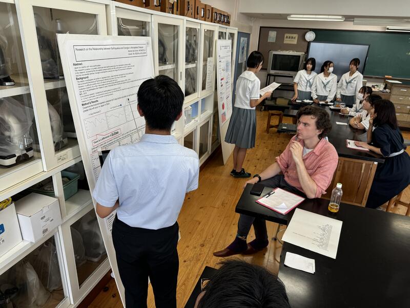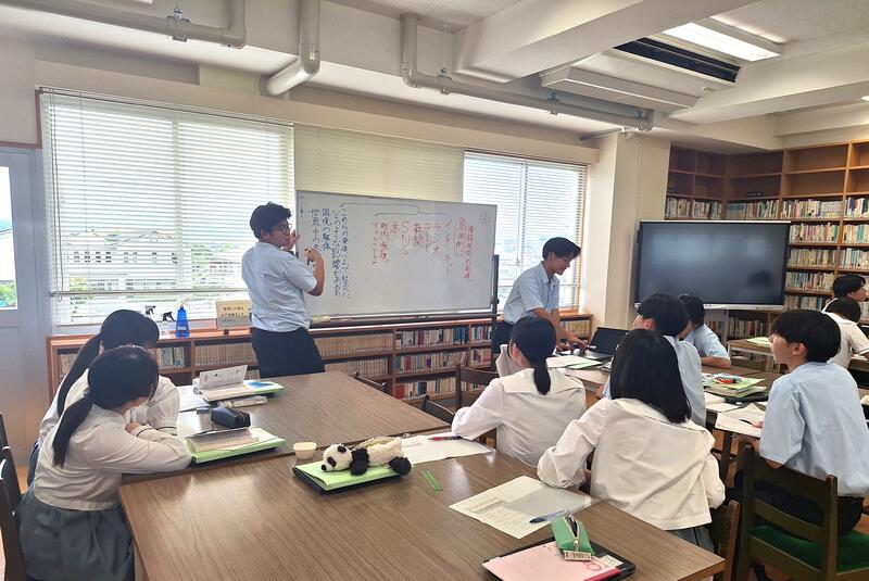 《発表で終わらず、部活動や放課後に仲間と問題を出し合い、他者の質問や素朴な疑問にも耳を傾ける姿勢を求めています。「問いを持つ」ことは、誰かの「問い」から始まることが多く、そのような関係性を校内で増やしていくことを期待しています。》