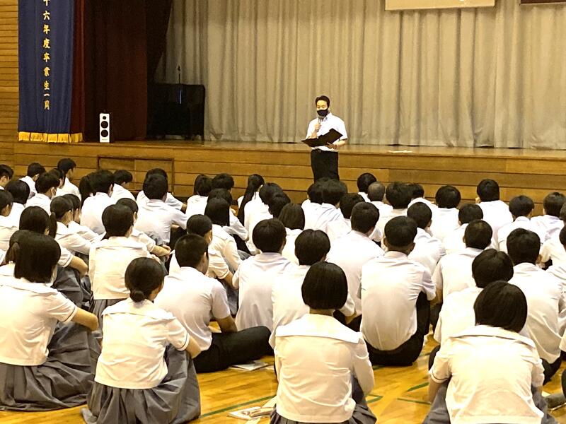 講話の最後では、自分の求めた結論に満足せず、一歩踏み込んで、授業の中で先生が発した質問や、あるいは隣に座っている友人の素朴な疑問にも耳を傾ける生徒であってもらいたいと校長先生から激励の言葉をいただきました。
