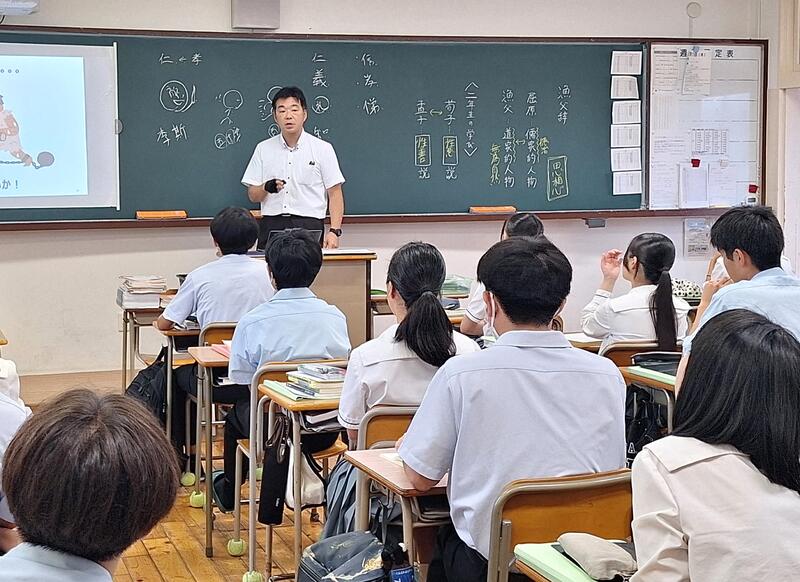 2学期終業式の校長先生の式辞は江戸初期に発行された算術書『塵劫記(じんこうき)』の紹介をきっかけに、日常から「問いを持ち、問いを発すること」の重要性を考えさせるものでした。