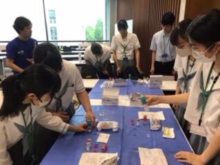 学校では、2年生の課題研究テーマをもとにしたクロスカリキュラムの準備(予備実験)をしています。