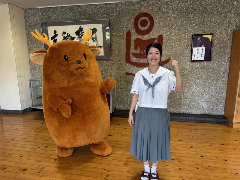 最後にしかモンですが、本校の宣伝部長として、そのかわいさを振りまき、鹿本高校のPRに一役も二役も買ってくれました。またステージ企画では、阿蘇中央高校の「あそにゃん」、御船高校の「ミフネコ」、そして熊本県PRキャラクター「くまモン」とのコラボを果たし、イベントを盛り上げてくれました。