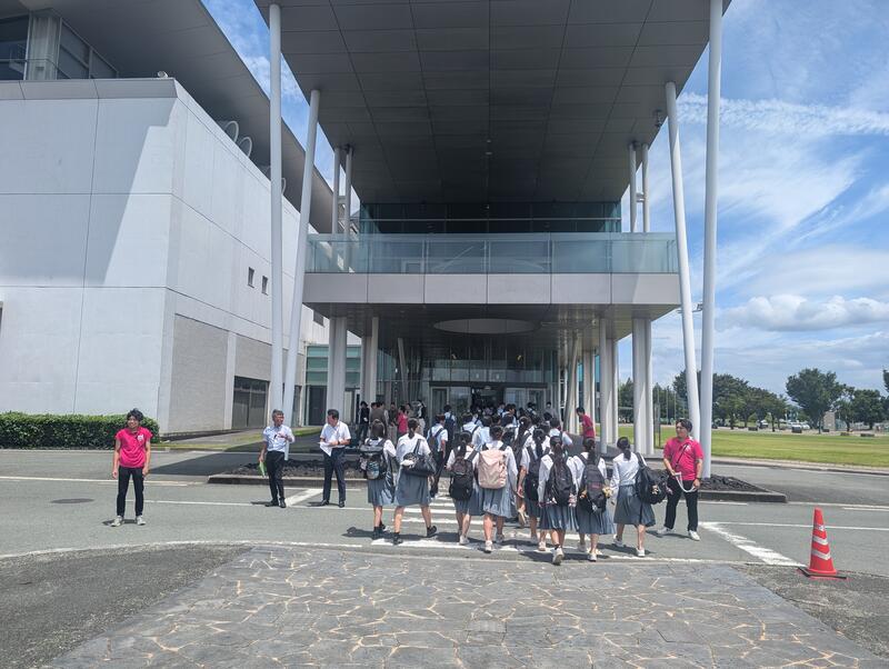 高速道路での事故渋滞によって、予定より1時間半遅れの到着となりましたが、無事全員で学校まで到着しました。