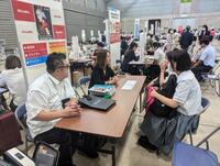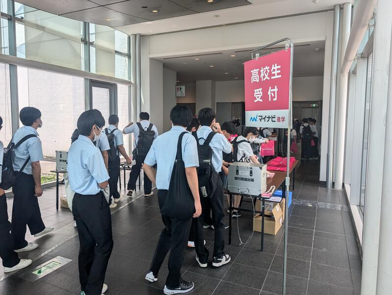 本校の学校紹介ブースでは、新調されたのぼり旗のもと、SSHの授業であるSTEAMで取り組んだタワーや学科紹介ポスター、新制服お披露目、サイネージでの学校動画紹介などを行い、訪れた人に鹿本高校をアピールしました。