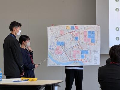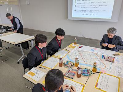 12月20日(土)「山鹿市まちなかグランドデザイン」策定に向けた高校生ワークショップが山鹿市役所で開催されました。今回のワークショップは、若者の声をまちづくりに反映させる目的で、山鹿市都市整備課の主催で行われました。当日は山鹿市内の各高校から参加があり、本校からは6名の生徒が参加しました。参加した生徒は20年後の山鹿市をイメージしながら山鹿市の課題や改善点について話し合いました。ワークショップの最後には、各グループでまとめた意見を発表しました。学年や学校も異なる高校生が集まり意見を出し合うことで、いろいろな気づきのあるワークショップになりました。