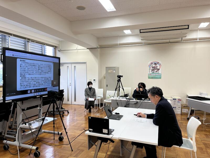 当初は体育館での代表者発表を予定していましたが、熱中症対策としてオンライン発表に切り替え、各教室で代表者の発表を聞きました。