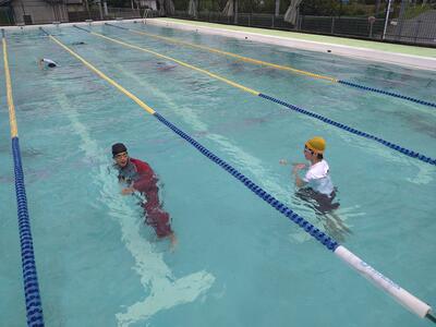 体育の授業で田代教諭の発案でウォーミングアップや動きづくり、スタートブロックの重要性を理解するためにスポーツテストの結果を使用した実験が行われていた。生徒たちは陸上競技でよくウォーミングアップに用いられるラダーやミニハードルを使用してアップを行った。行う際は意識すべきポイントをしっかりと伝えながら実施されていた。さらにスタートブロックの使用方法をレクチャー、足の角度などを調整させ、50m走を実施。