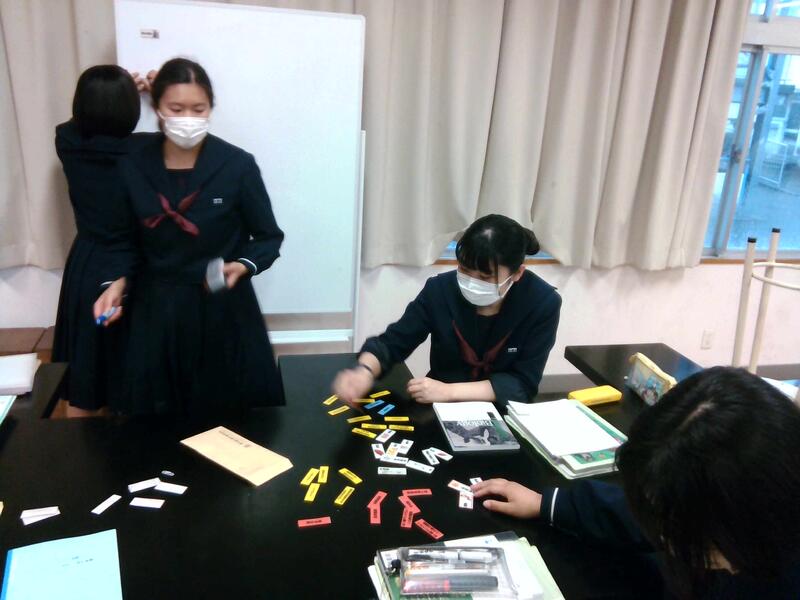 最後に行った演習問題では、4枚のカードの中から正しい2枚を選択できている生徒が多く、英文の内容をしっかり理解しているようでした。