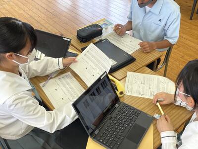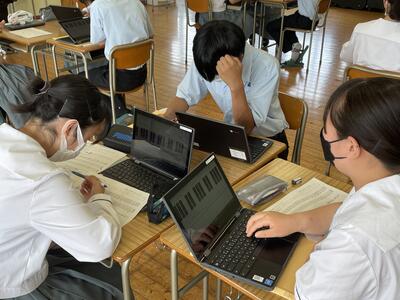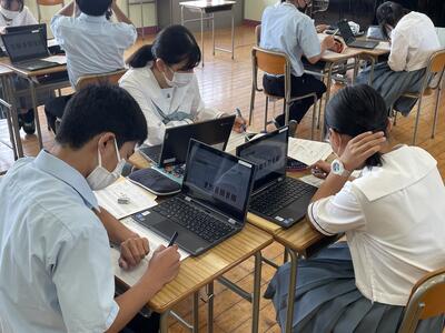 ※ポスターは生徒たちが持っているChromebook内で班メンバー全員で分担して作成しています。