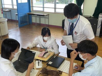 その後、鹿本高校周辺での液状化の可能性についてグループで話し合い「なぜそう考えたか」をまとめ、発表しました。
