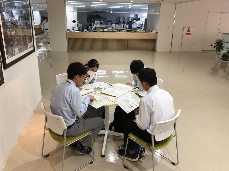 現在、山鹿の魅力を市役所や各企業、施設等に訪問し情報を集めています。また、グループによっては保護者にアンケートを実施するなどの取組を行っています。外部に出ることも多いため地域の方から「名刺を作成してみては?」というアドバイスをもらい早速作成したグループも出てきました。