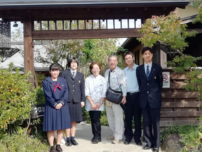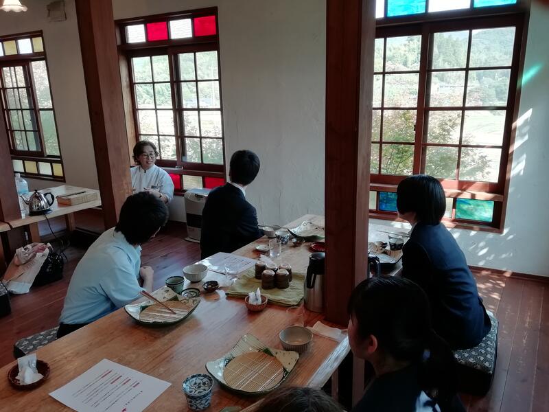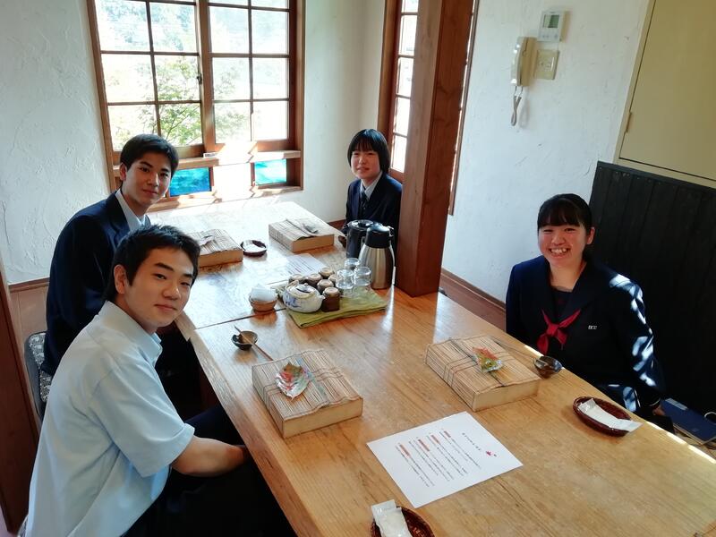 「菊池川流域地の恵み体験協議会」の山本さま、「ほたるの長屋」の女将・福田さまと、城北高校調理科1年生3名の顔合わせが、平山温泉のほたるの長屋にて行われました。