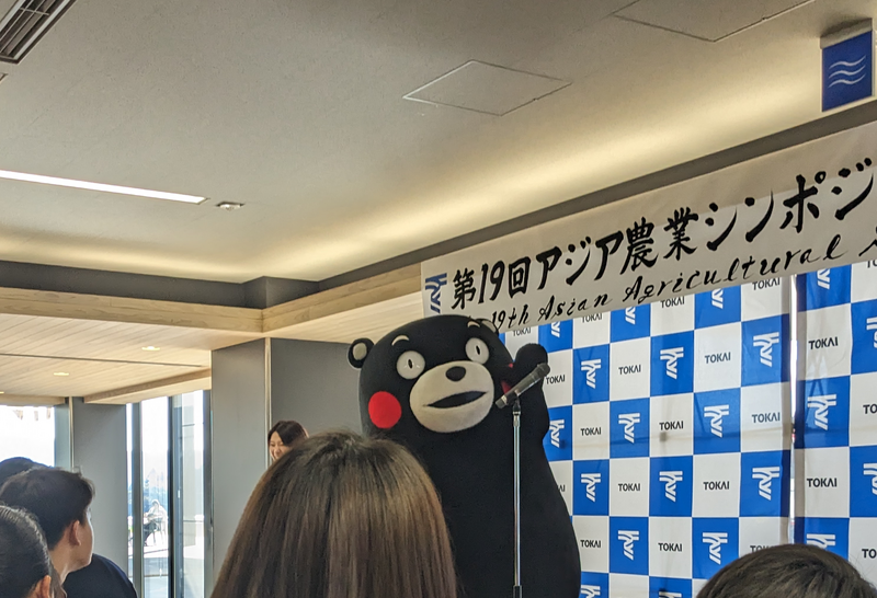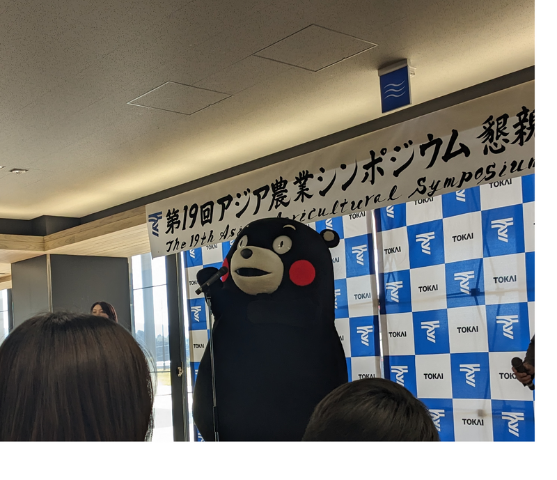 昼食懇親会にはくまモンが来てくれました。 |