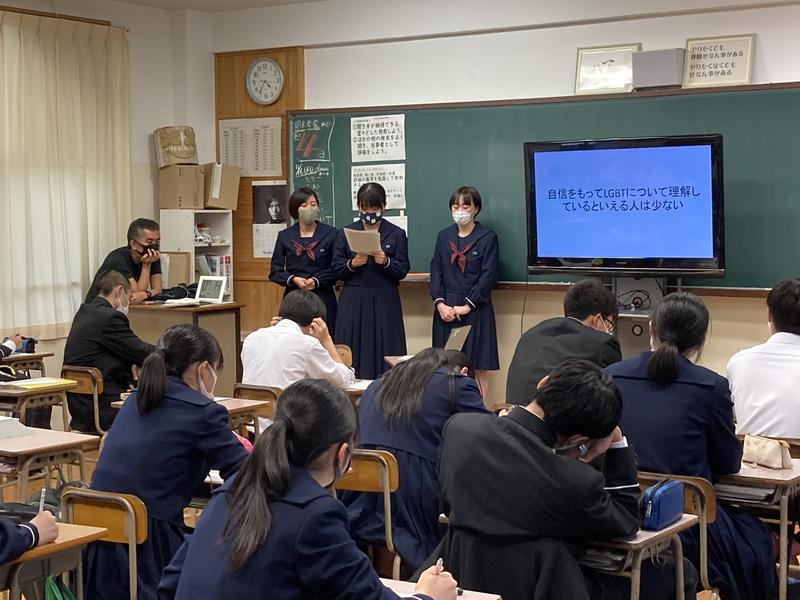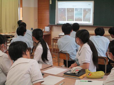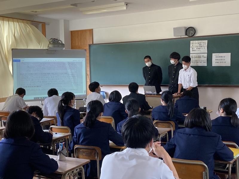 熊本県の各学校が集まり総合的な探求の時間に行なっている研究を報告し合う取り組みが実施され本校からは2年生の木野・坂井・井上・塚本・山部・渕上の6名が代表となり、学校における部活の在り方や避妊、ペットの在り方など様々なテーマでオンライン発表を行いました。とても落ち着いて堂々と発表をしてくれました。