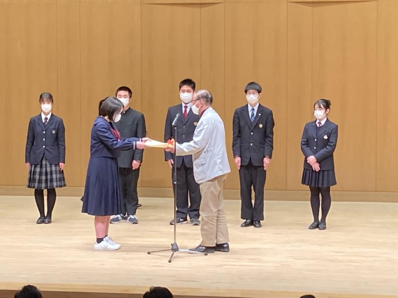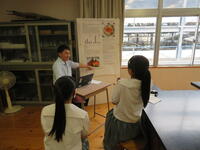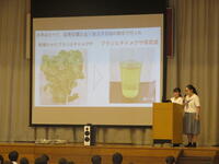 個人研究を行う2学年に向けて個人研究で特に頑張っていた3年生の細江さんと斎藤さんが代表して、個人の課題研究について発表を行いました。この2人は内容だけでなく、取り組む姿勢が素晴らしく、自分で考え、動き、継続して実験や調査に取り組んでいたことです。その姿勢をぜひ、後輩たちにも感じてほしいと思い、冨田教諭が企画し実施されました。今年度も素晴らしい研究が進められることを期待しています。