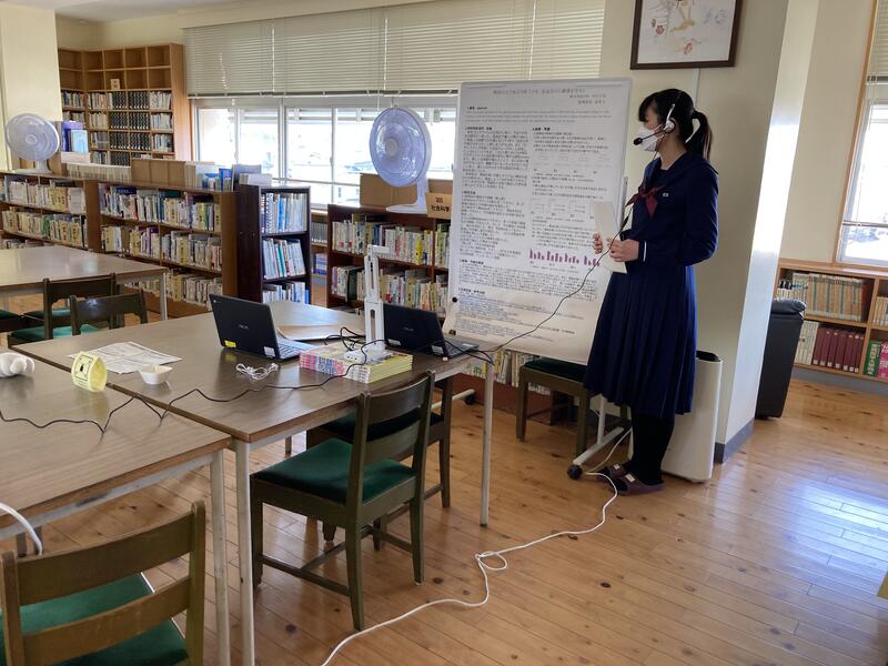 一年間取り組んできた課題研究発表会を開催しました。予選で勝ち上がった各クラスの代表5組が発表を行いました。防災に関するものやボランティア、感染症対策、などコロナ禍で見えてきたら社会課題を掘り下げ研究を進めました。