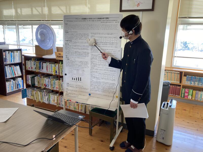 2月21、22日に鹿児島市の市の宝山ホールで開催された『第9回 高校生国際シンポジウム』で、鹿本高校から2年生1名が人文科学・教育分野でポスター発表を行いました。