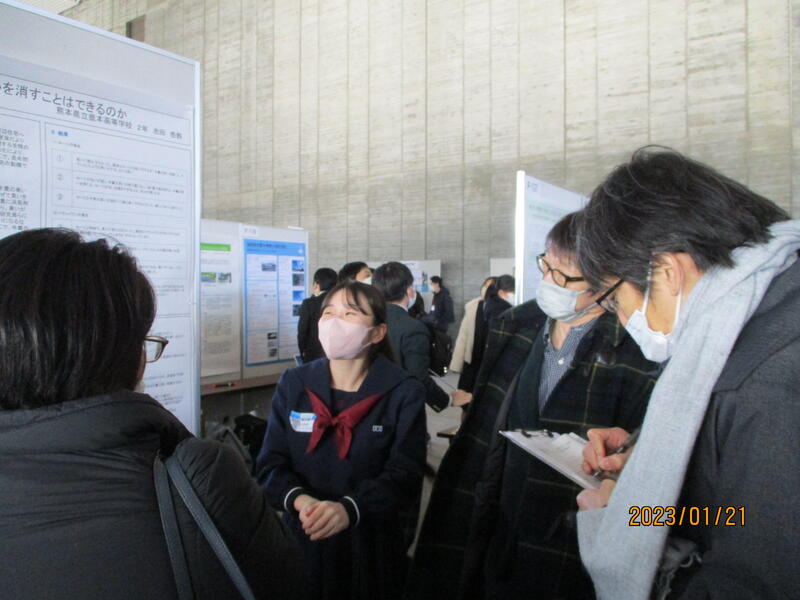 12月23日(土)、グランメッセ熊本にて、県立高校生による課題研究発表会が開催されました。本校からは1年生29名(10作品)、2年生48名(24作品)、計77名(34作品)が参加。ポスター発表を行いました。