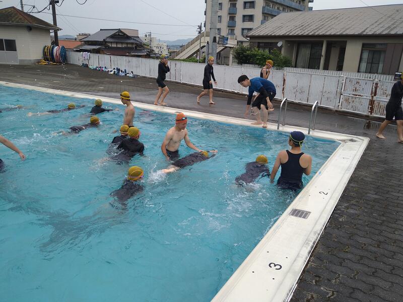 山鹿小学校にマリーンスイミングの指導者の方が来校されるところに補助役として一緒に授業に関わらせて頂く取り組みです。