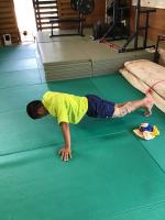 その後は、柔道場で様々な体つくり運動を行いながら一緒に楽しく運動に取り組みました。