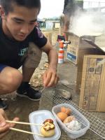 完成した燻製機で一人ひとりがチーズやゆで卵などを燻製して作ってみました。