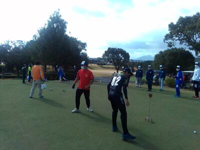 まずはターゲットバードゴルフのボールを使ってグラウンドでの練習です。