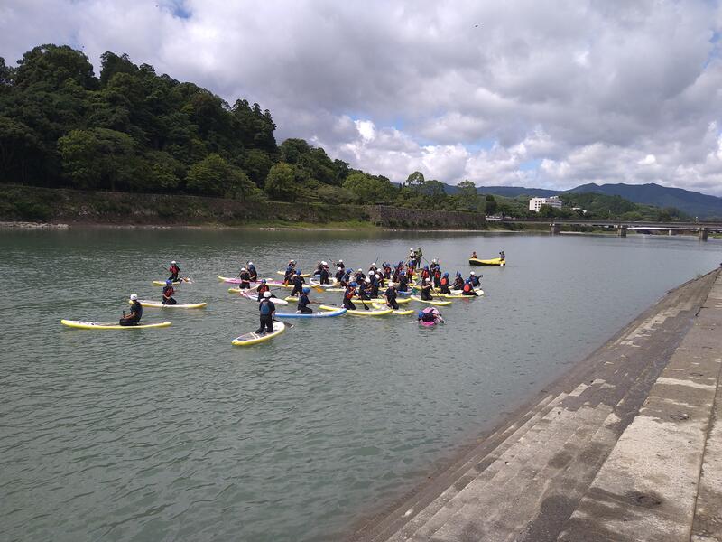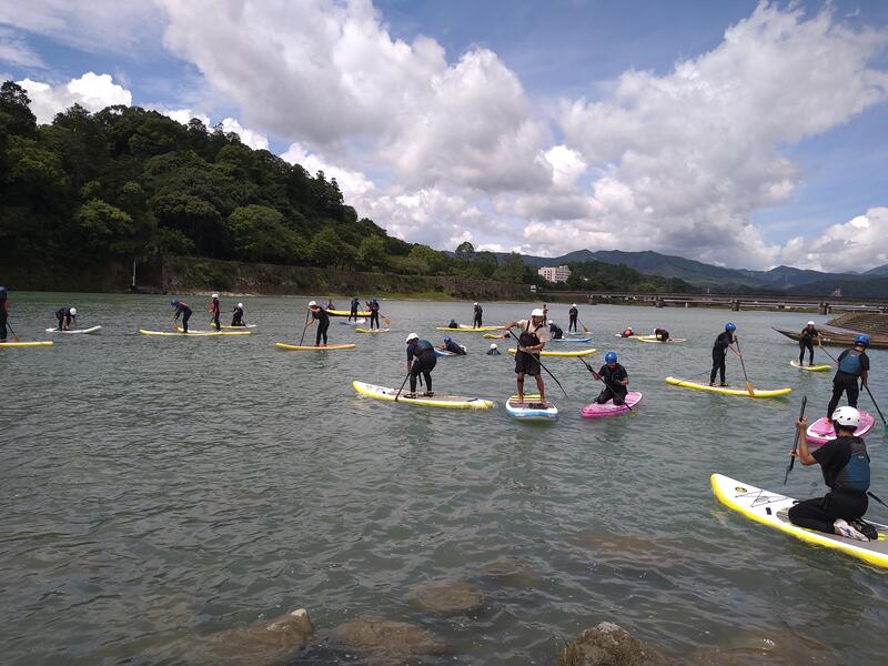 約2時間の実習の中で何回も水に落ちながらもぐんぐん上達し、最後はチーム対抗でレースを実施しました。