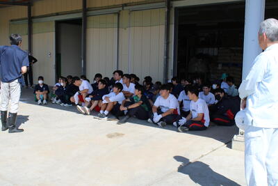 いよいよ当日になりました。生徒は、鹿本高校に集合してバスで山鹿小学校に向かいます。
