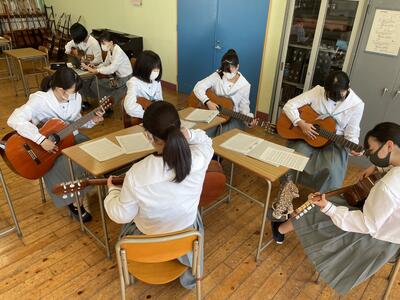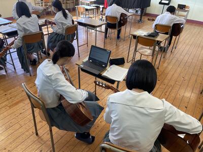 1年生の音楽選択の授業では現在ギターに取り組んでいます。