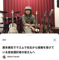また、プロのギタリストの山木将平さんが鹿本高校音楽選択者へ動画メッセージを送ってくださいました!(YouTubeの限定公開で送ってくださいました。)