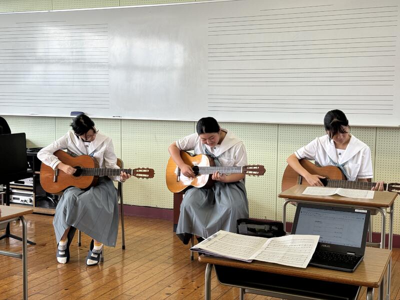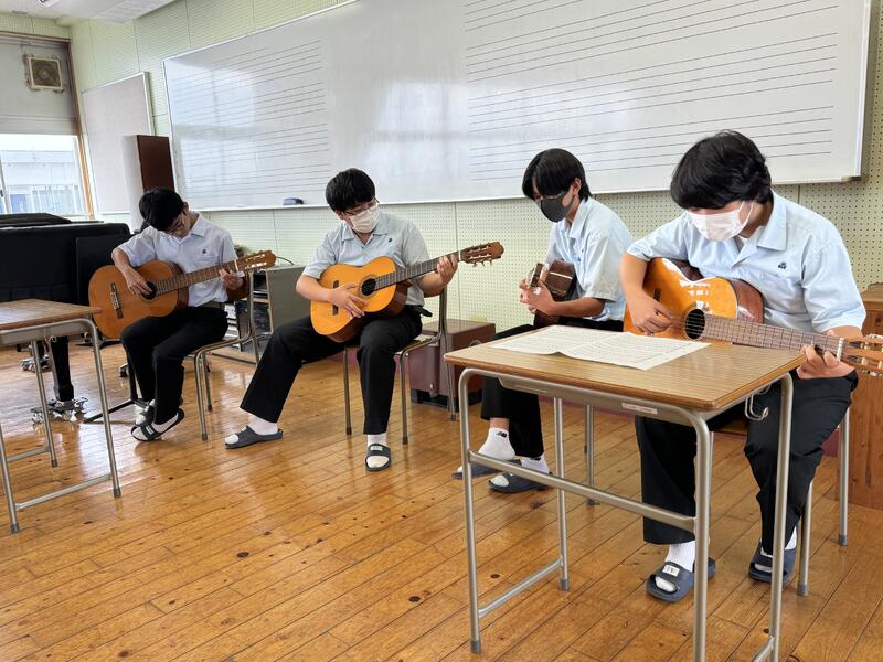 【1年 音楽選択】ギターアンサンブルに挑戦中!