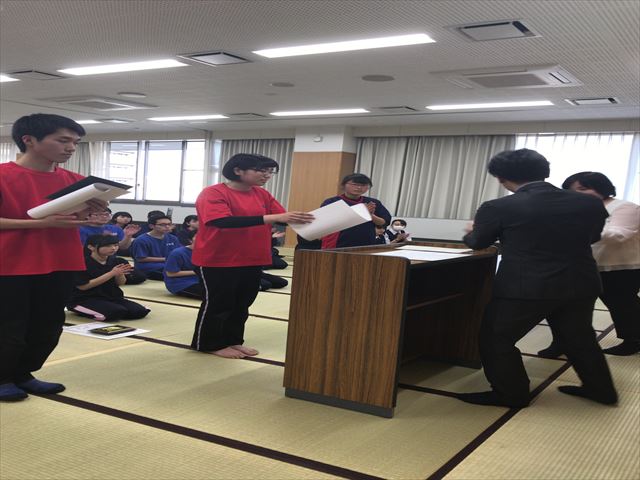 1/28(土)熊本西高校のセミナーハウスで第38回熊本県高等学校小倉百人一首かるた競技大会が行われました。本校からは4チームが参加し、Aチーム(2年木庭・2年松尾・1年樅木)・Cチーム(1年梅田・1年森・1年冨田・1年福島)の2チームが3勝1敗で優秀賞を獲得しました。