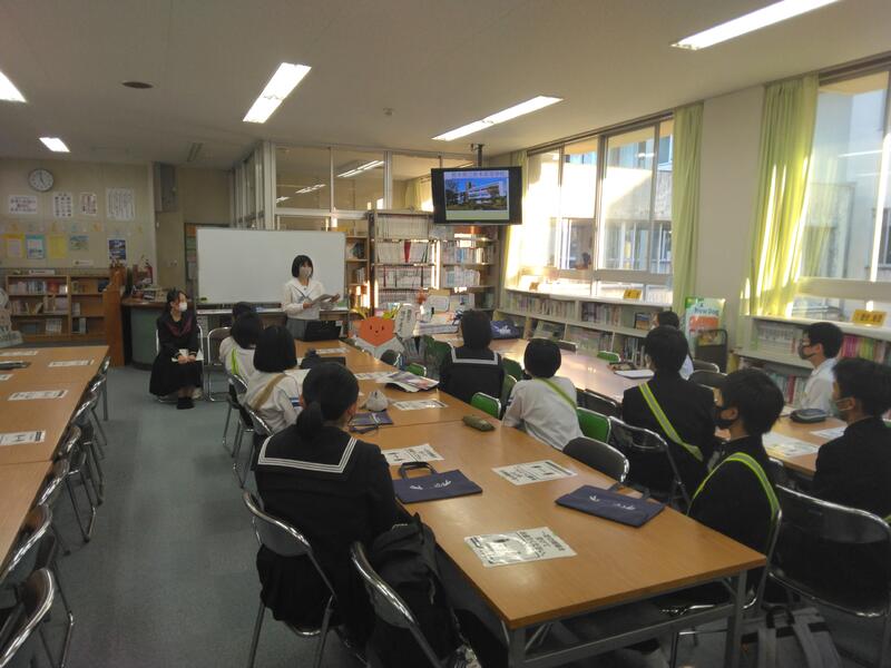 2月1日(水)、北九州市立大学国際環境工学部、環境デザイン学科の教授・福田展淳先生をお招きして、『建築デザインへの招待』というテーマで1時間の講座を実施していただきました。建築に興味のある生徒はもちろん、興味のある文系の生徒や進路を考えている1年生などで14名の生徒が参加しました。講座の内容は、建築がただ建物を作ったりデザインを考えたりするのではなく、環境への配慮やエネルギー(エコ)を考えた設計、街づくり、都市計画などを考慮している内容をお話しいただきました。建築一つにとって見ても、学校で学ぶ様々な分野が折り重なって社会に貢献していることを学ぶことができました。