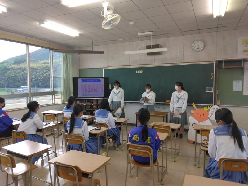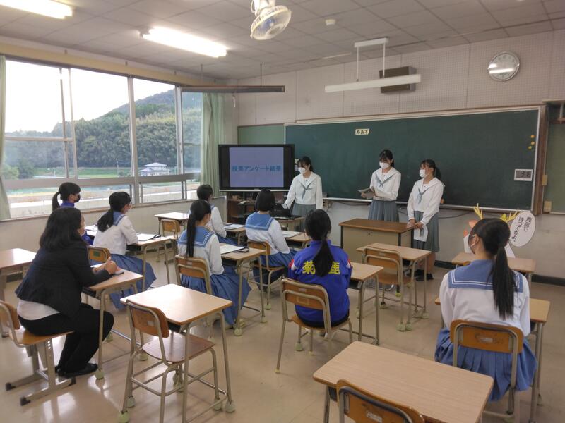 午後からは2年2組の丸山君のスライド発表が八千代座でありました。各学校地域の発展のためにこの1年間研究してきた内容を発表しました。丸山君は「行政アプリ」に関しての発表を行いました。最後に表彰が行われ、鹿本高校は「笑顔が太陽で賞」を受賞しました。今回の発表は、「和紅茶が山鹿市が初めて政府の認定を受けた」など初めてを聞くことが多く、生徒の考える幅が広がったように思えました。