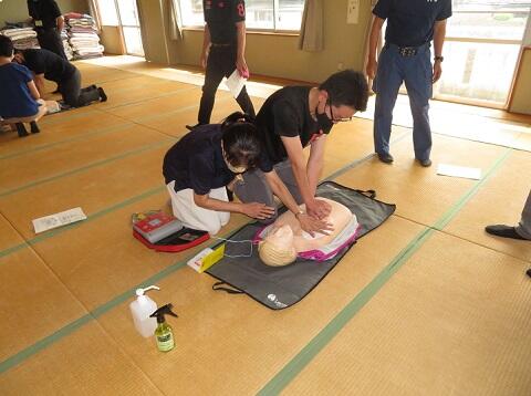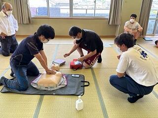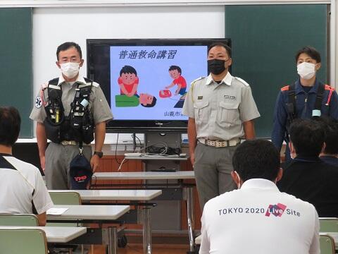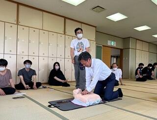 そのなかの一つとして、山鹿市消防署の救急隊の方々から救命入門コースの講習をしていただきました。