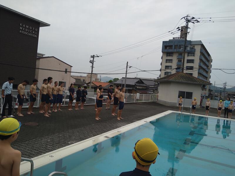 第1回目に参加した生徒の中には、3名の山鹿小学校出身の生徒もいました。子どもたちとの関わり方やクロールの指導の仕方など多くのことを学ぶことができました。