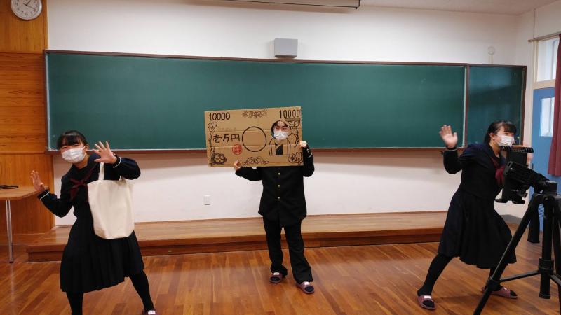 グロバール探究コースの3人は西教諭とALTのクリス氏の指導の基、放課後や休み時間を使って、動画の撮影に取り組んできました。納得がいかないと言って、再度休日返上で撮影に臨む姿を見ていたので、この表彰は本当に喜ばしいものでした。この経験を様々な場面で生かしてくれればと思います。