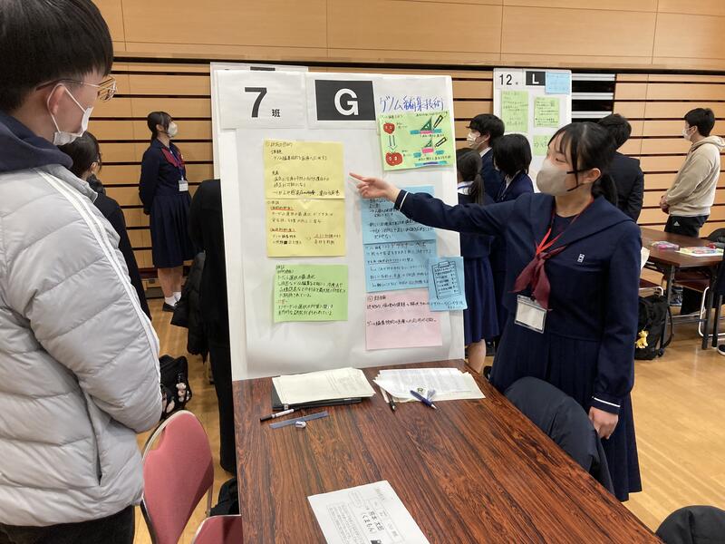 3月3日、正解のない現在未解決のテーマについて、グループで解決方法を話し合いポスターにまとめて発表を行う「課題解決型学習」に2年生1名が参加しました。