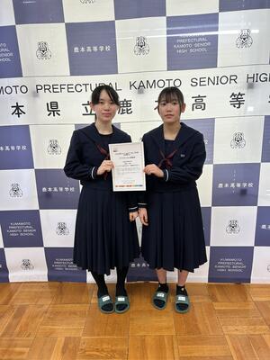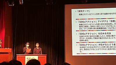 3月9日に熊本市の市民会館で行われた『2023年度 SDGs QUEST みらい甲子園 熊本県大会 ファイナルセレモニー』に鹿本高校から山鹿ブドウ班の2人が出席しました。