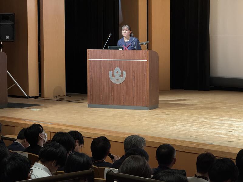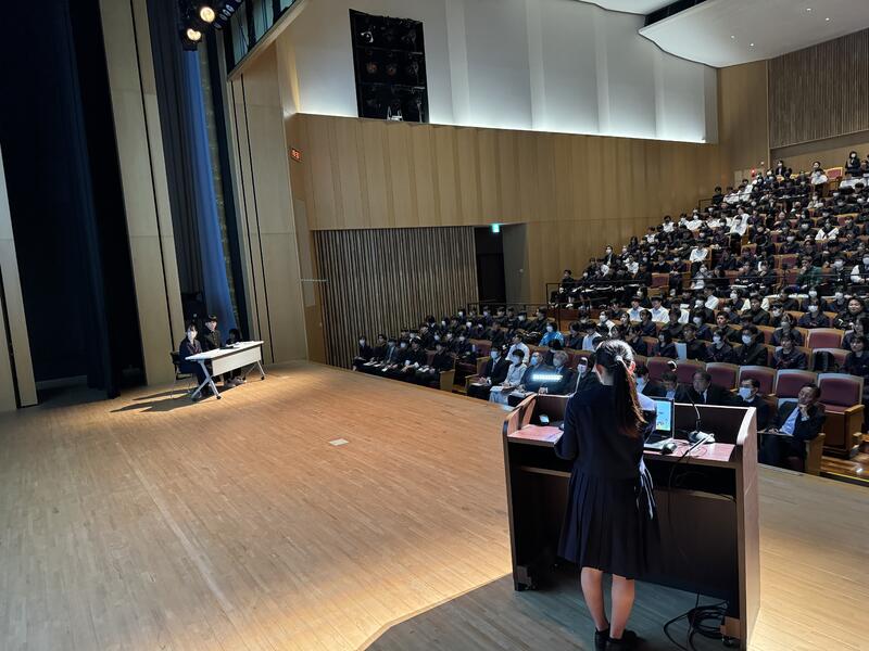 3月14日(木)、「総合的な探究の時間」において、探究活動を続けてきた2年生の代表者による成果発表会が行われました。夏休み等に学校を出て、専門の方にインタビューを行う、多くの人にアンケートを取る等の自身の研究をまとめてきました。今日の発表会では、大学の先生方や地域の方、2年生や1年生が見守る中で、山鹿市民交流センター文化ホールで堂々と発表しました。今回発表した生徒と研究分野は、以下のとおりです。